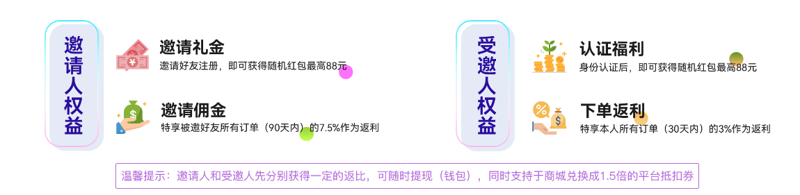 4. 訂單收益需測試完成并結算后方可提現,邀請好友獲得的現金紅包,在本人與好友均完成認證后即可領取提現;
